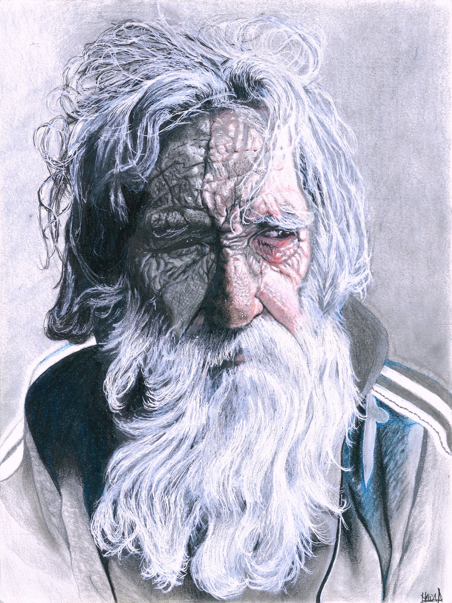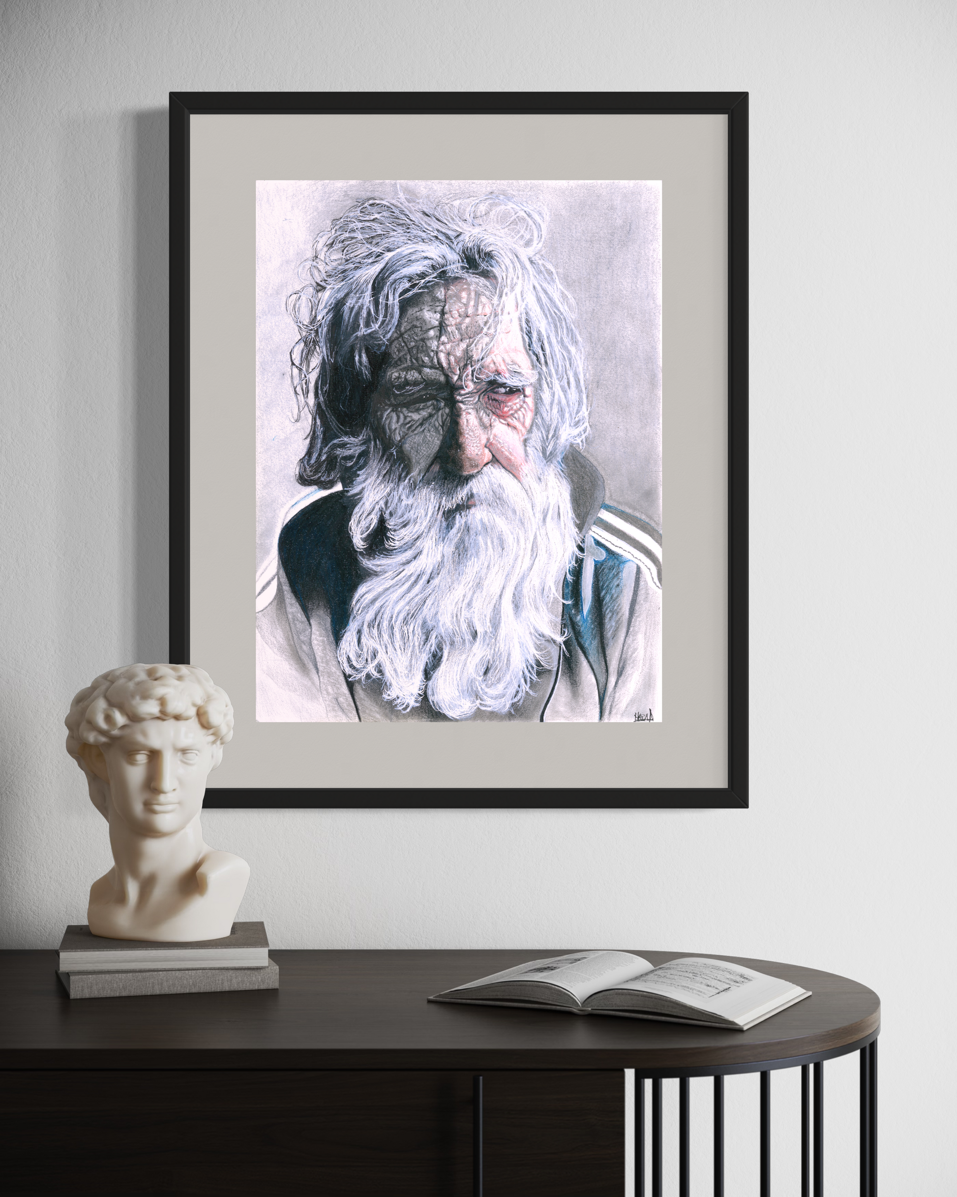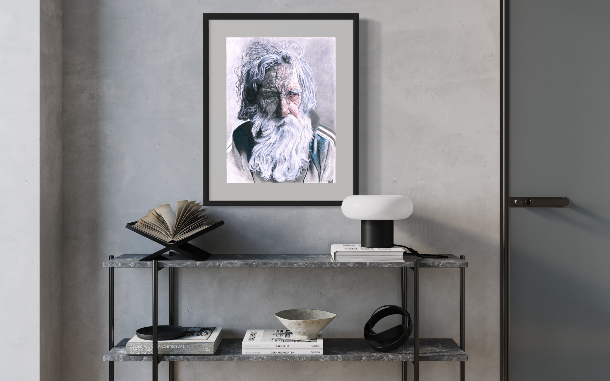 In "Father Time," the old man's white beard and hair symbolize wisdom and the passage of time. His distant gaze reflects contemplation and the inevitability of life's journey. Just as time ages everything, the man embodies the weight of memories and experiences, reminding us of life's fleeting moments and the wisdom they impart.